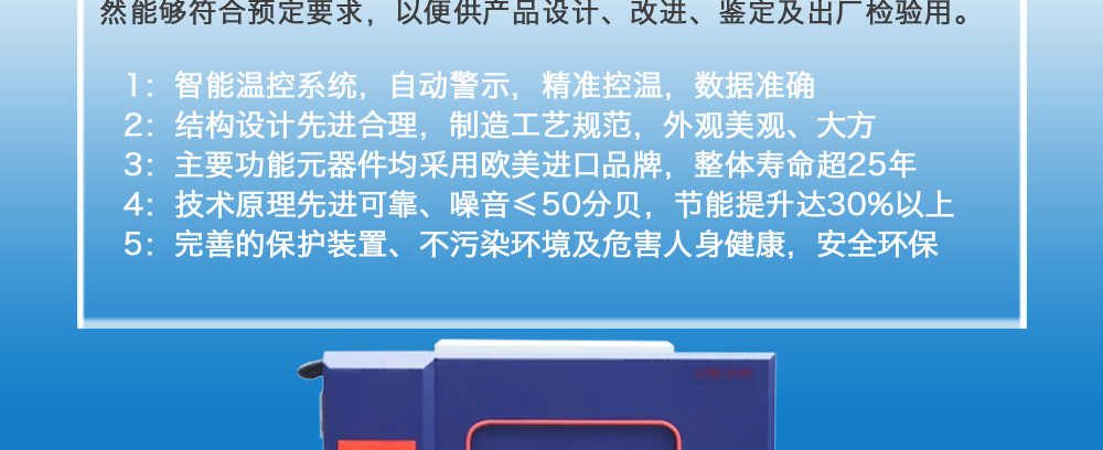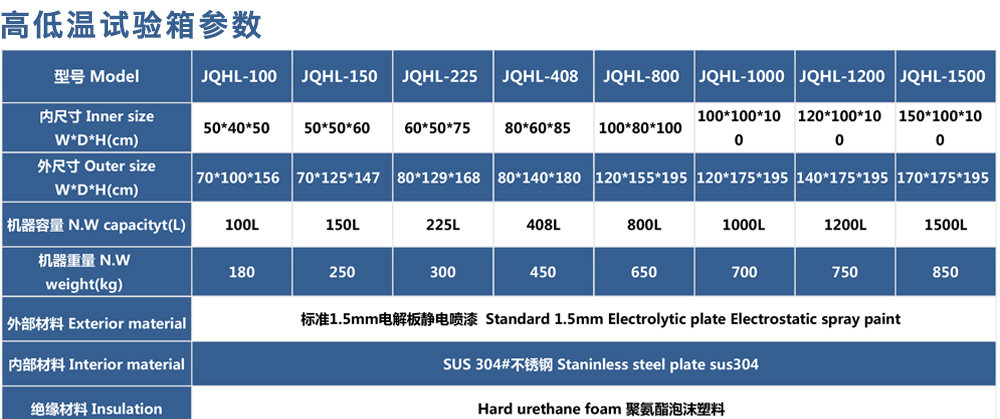 用途:高低溫試驗(yàn)箱 JQHL-100L-1000L為電子、電工、儀表、零部件、材料等試驗(yàn)樣品進(jìn)行高溫、低溫、或者恒定試驗(yàn)的溫度環(huán)境變化后的參數(shù)及性能測(cè)試。適用于汽車(chē)、航空、高校,專(zhuān)業(yè)實(shí)驗(yàn)室研究開(kāi)發(fā)
