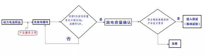 在振動試驗前,電池包或系統(tǒng)樣品需要先進行預(yù)處理循環(huán),以確保在振動試驗時樣品的性能處于激活或穩(wěn)定的狀態(tài),在此提出,預(yù)處理失敗(如電池容量達不到要求)的樣品是不能做振動試驗的,作為不合格樣品返還電池制造商。