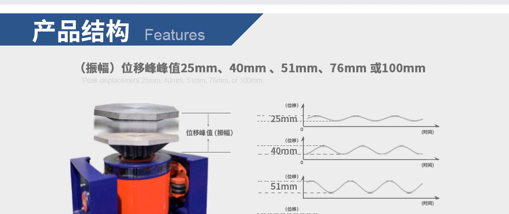 * 位移可選76mm或100mm.uDisplacement peak-to-peak value of 76mm or 100mm.