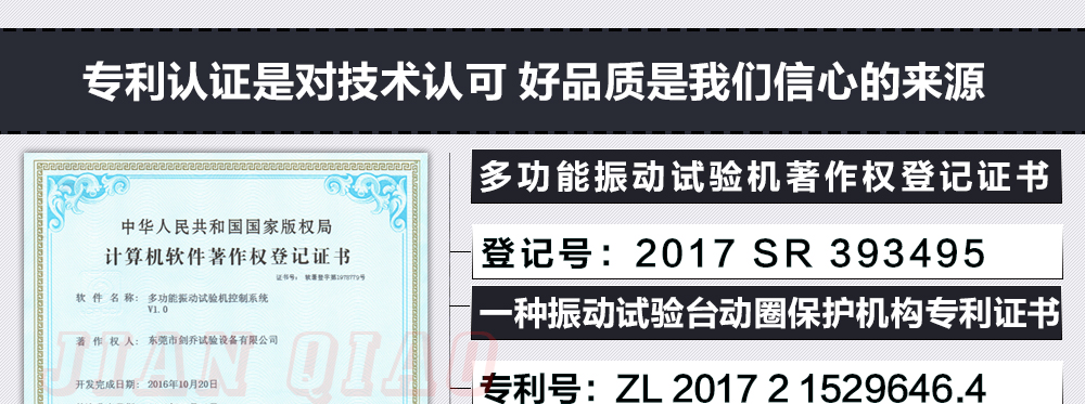 您好!歡迎光臨廣東劍喬試驗設備有限公司官網!主營:振動臺,振動試驗臺,電動振動臺,高頻振動臺,沖擊試驗臺